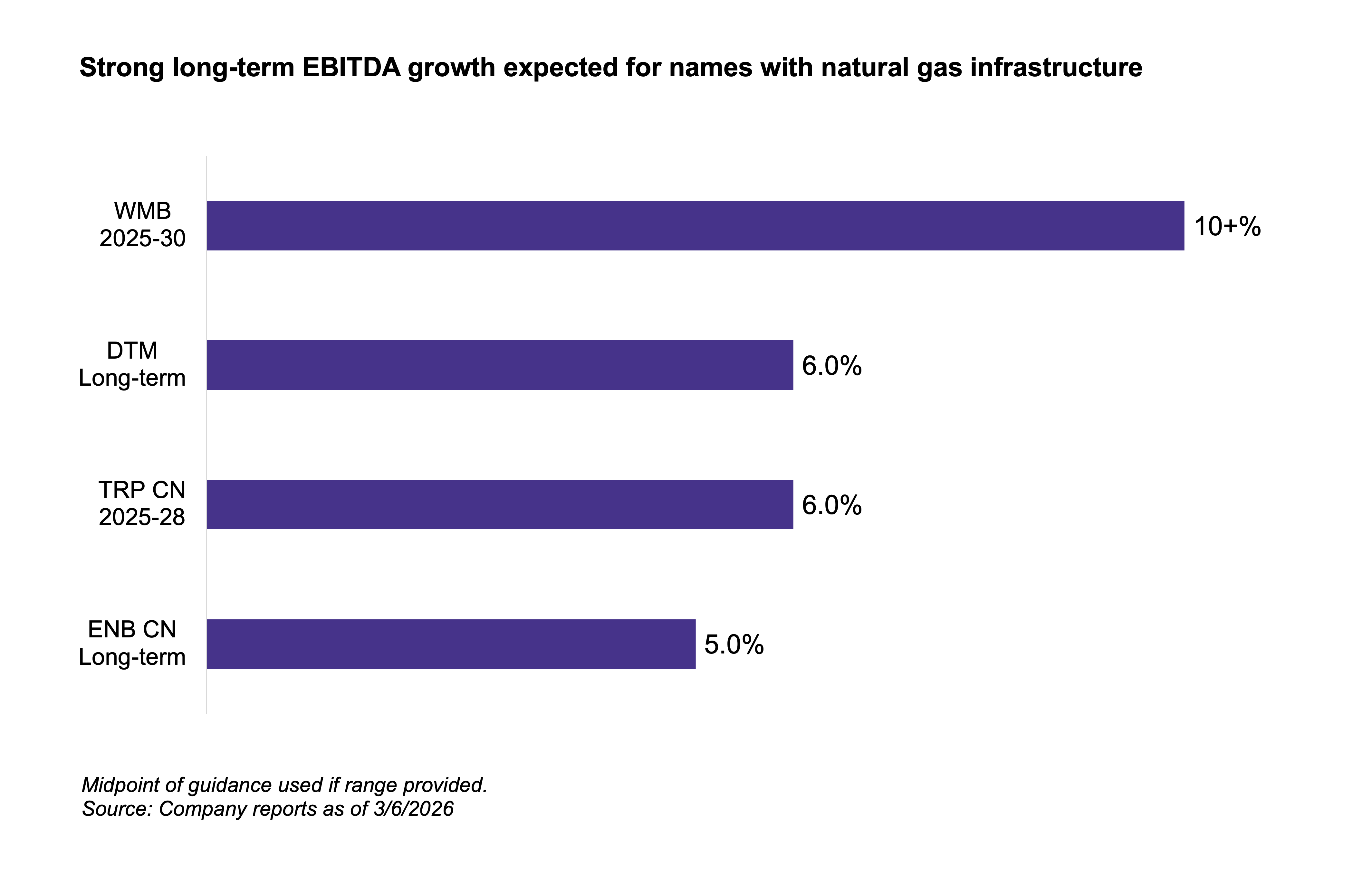 With major projects coming online in 2028 and 2029, the most significant earnings impact is still ahead. Reflecting this multi-year growth runway, several natural gas-focused midstream players have issued strong long-term guidance. Anchored directly to end-user demand via fee-based contracts, these projects include strong counterparties and offer excellent long-term visibility to cash flows (read more).
