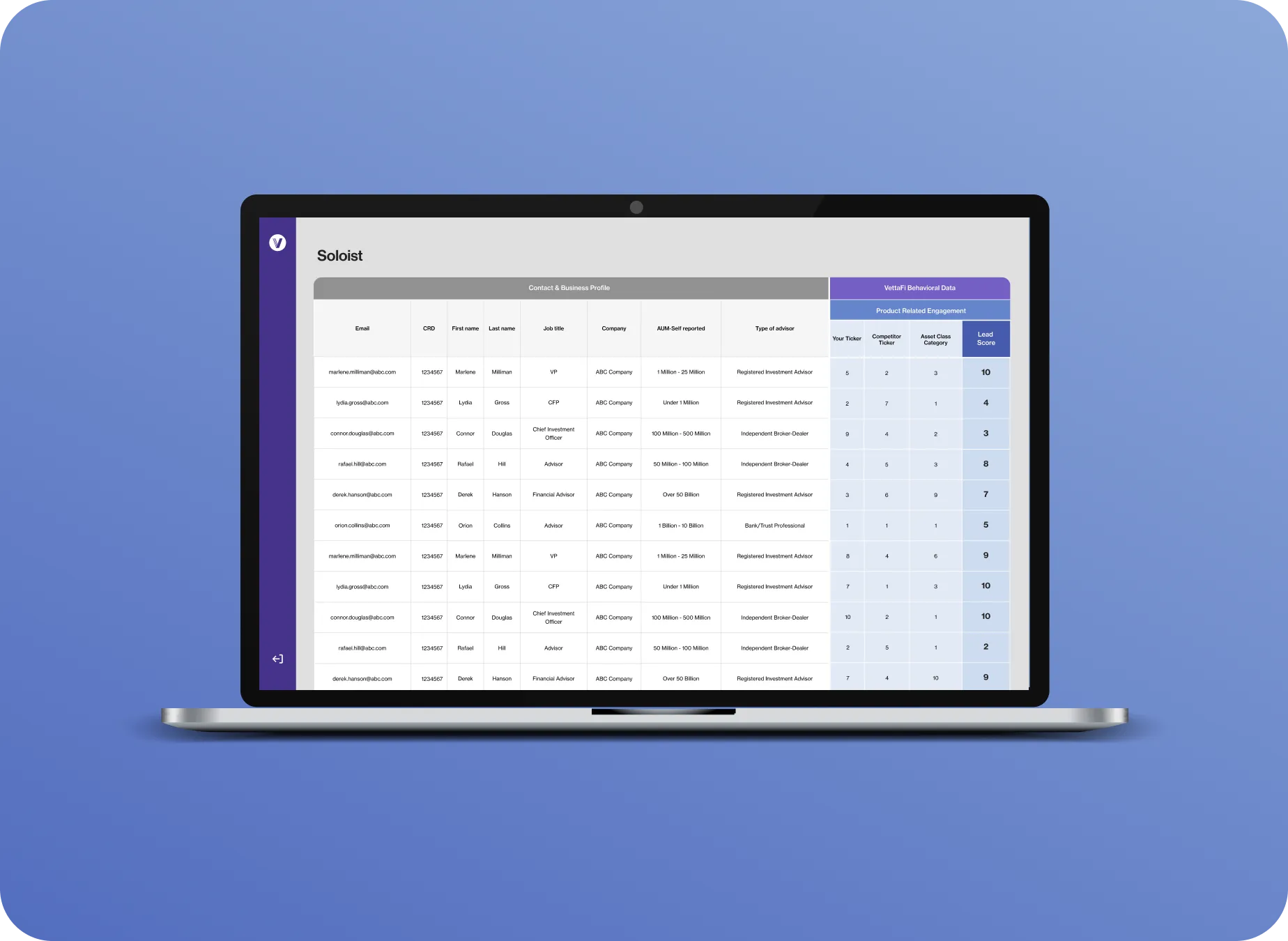 Our advisor lead subscription gives you access to behavioral-enhanced leads to optimize go-to-market, distribution, and business intelligence strategies.
